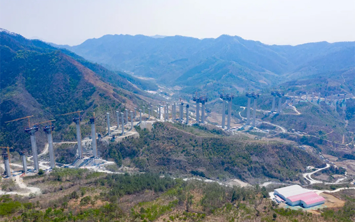 樂望高速是黔桂兩地便捷連通的重要省際通道,主線橋隧比達(dá)78%,是目前廣西橋隧比最高的高速公路。雅長(zhǎng)特大橋作為樂望高速控制性工程之一,全長(zhǎng)2312米,主橋主墩最大高度155米,為廣西第一高墩。