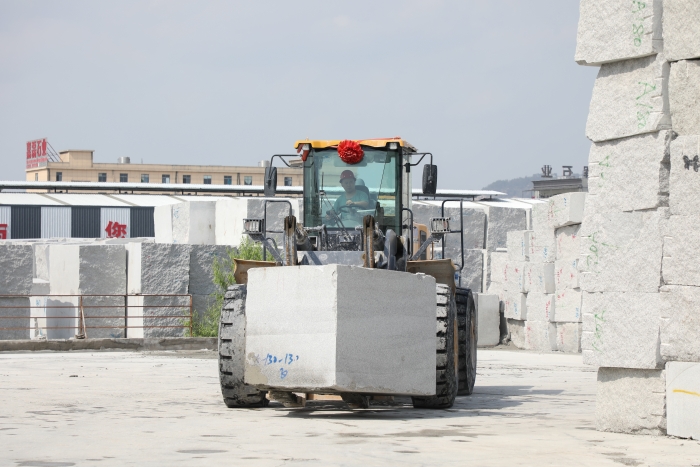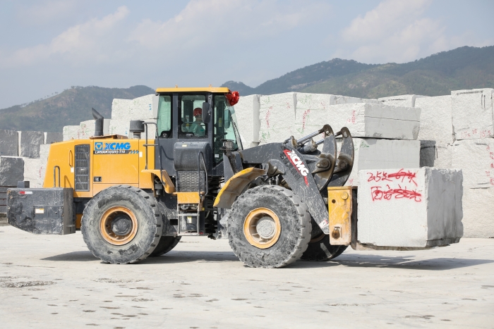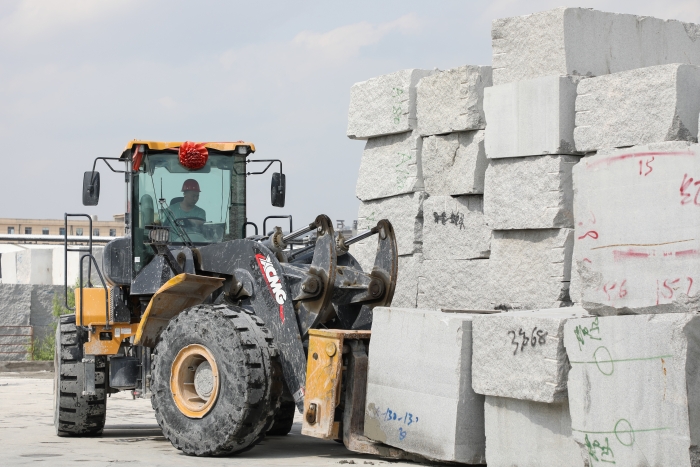 高檔花崗巖石材,以其優(yōu)美的外觀、堅硬的質(zhì)地,一直是公共設(shè)施外立面裝飾的首選??蛻粲玫倪@臺徐工LW500KV(GIV)-T18石材叉裝機(jī)已在石材加工廠使用兩年,“相比過去用的車,操控輕松方便,視野很開闊,在復(fù)雜工作環(huán)境下也非常穩(wěn)定可靠,干活效率高?!瘪{駛員對徐工石材叉裝機(jī)贊賞有加。