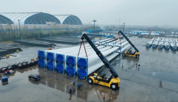 本次交付的國產(chǎn)最大噸位風(fēng)電正面吊XCS70KS,可實現(xiàn)70噸/4米貨物吊裝,60噸/4米貨物帶載行走作業(yè),雙機可抬吊140噸貨物,大幅提升港口大、重件轉(zhuǎn)運效率。