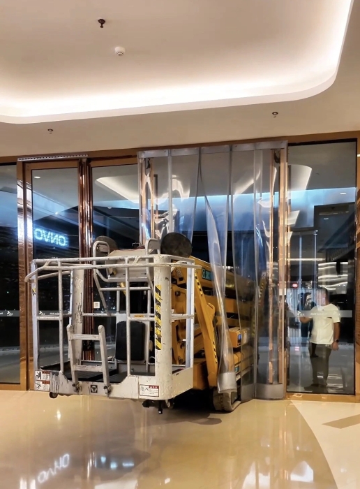 第一關(guān)是商場內(nèi)部空間有限的通道和門廊,徐工XGS26X-Li憑借僅0.99米的整機(jī)寬度通過狹窄的門廳,避免了拆門、擴(kuò)口等繁瑣準(zhǔn)備。