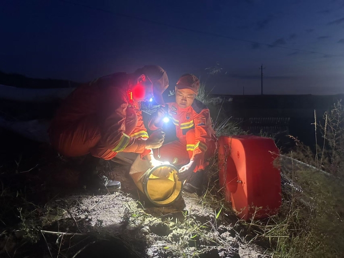 10名隊(duì)員輪班倒,迅速進(jìn)入“24小時(shí)連軸轉(zhuǎn)”狀態(tài)。沒(méi)有一絲猶豫,他們踩泥漿、涉深水,卷起褲管開始鋪設(shè)水帶,科學(xué)調(diào)整作業(yè)方案。為避免抽水作業(yè)沖刷壩體,他們利用橡皮艇涉水劃到農(nóng)田中間固定水帶,以專業(yè)判斷化解潛在風(fēng)險(xiǎn),彰顯科技救援的力量。