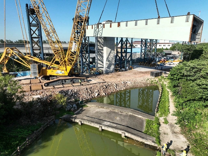 近日,徐工XGC11000(650噸級)履帶起重機現(xiàn)身上海沿江通道施工現(xiàn)場,將11段大型預(yù)制節(jié)段梁平穩(wěn)安裝就位,助力項目關(guān)鍵節(jié)點高效推進。